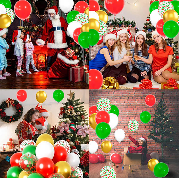 ЦОНФЕТТИ: Прозирна лопта је уграђена црвеним, зеленим и златним конфетима. Након инфлације, то је попут пахуљица, дајући динамичну атмосферу конфете за божићне балоне и промену статичког распореда у "уједначену снов сцене".