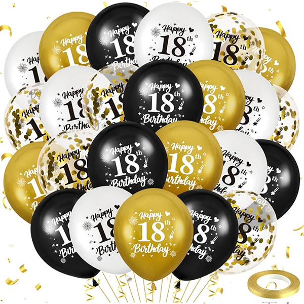 Сет балона за 18. рођендан:Сет балона за 18. рођендан који је лансирала наша фабрика укључује балоне од фолије, балоне од латекса, рођенданске заставице, рођенданске честитке, траке и друге додатке. Постоји много боја које можете изабрати, као што су црно злато, зелено злато, ружичасто злато, плаво злато, итд. Ове боје су врхунске и елегантне, чинећи целу забаву још изузетнијом и додајући осећај рођенданске церемоније. Штавише, овај пакет је изузетно исплатив, омогућавајући вам да направите незаборавну прославу 18. рођендана по приступачној цени.