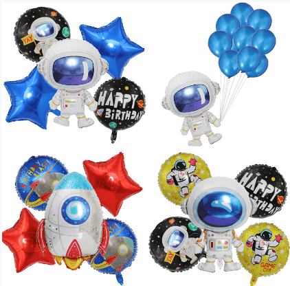 Постоје уобичајени астронаути у пуном облику тела, који приказују слику астронаута који носе свемирско одело, неки стилови са базом, могу да стоје на надувавање. Постоје разне величине, као што су 18 инча, 24 инча, 28 инча итд., као и неки већи балони, као што су стојећи астронаут фолијски балони висине 65 цм. Углавном се користи за рођенданске забаве са темом свемира, забаве за дочек беба, декорацију дечијих соба и друге прилике, које догађају могу додати радосну атмосферу простора.