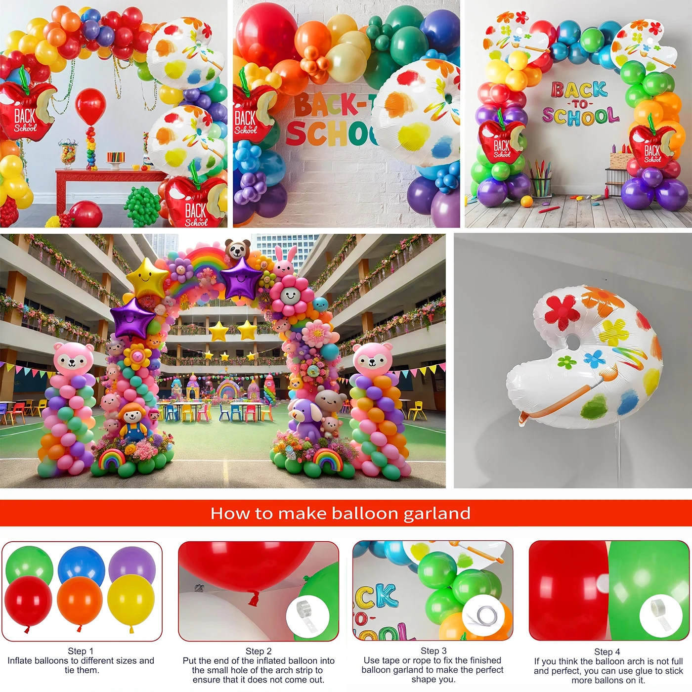 Било да се користи као позадина позорнице, украс на вратима учионице или вишеструки лукови за украшавање школског простора, лукови од балона су веома флексибилни.