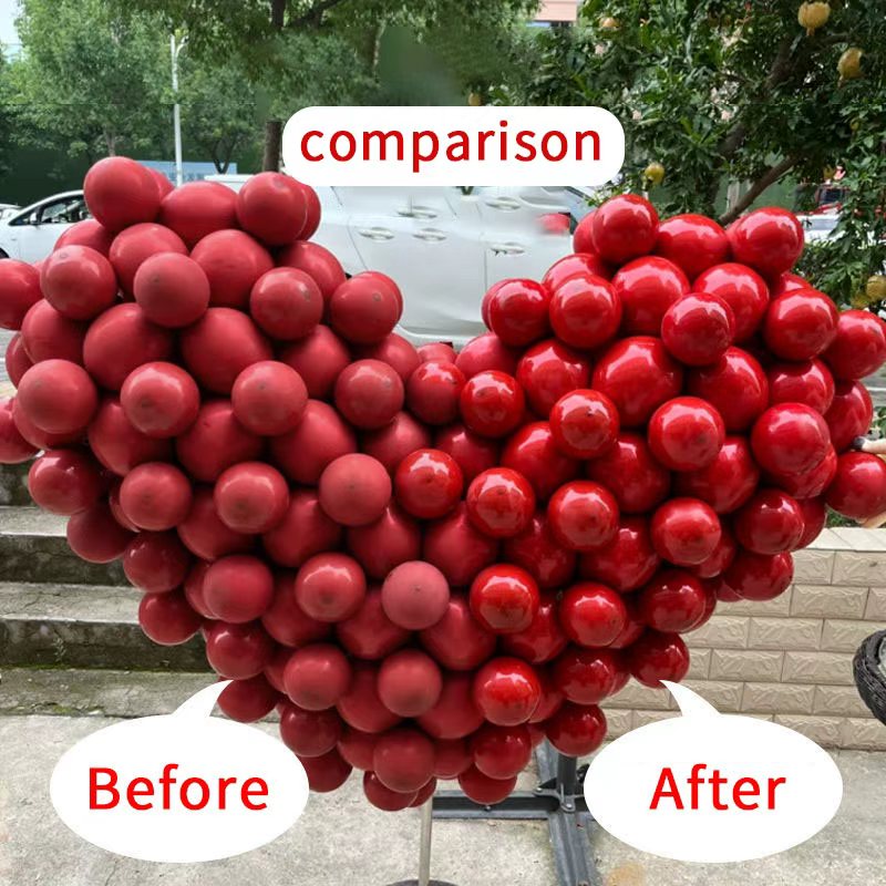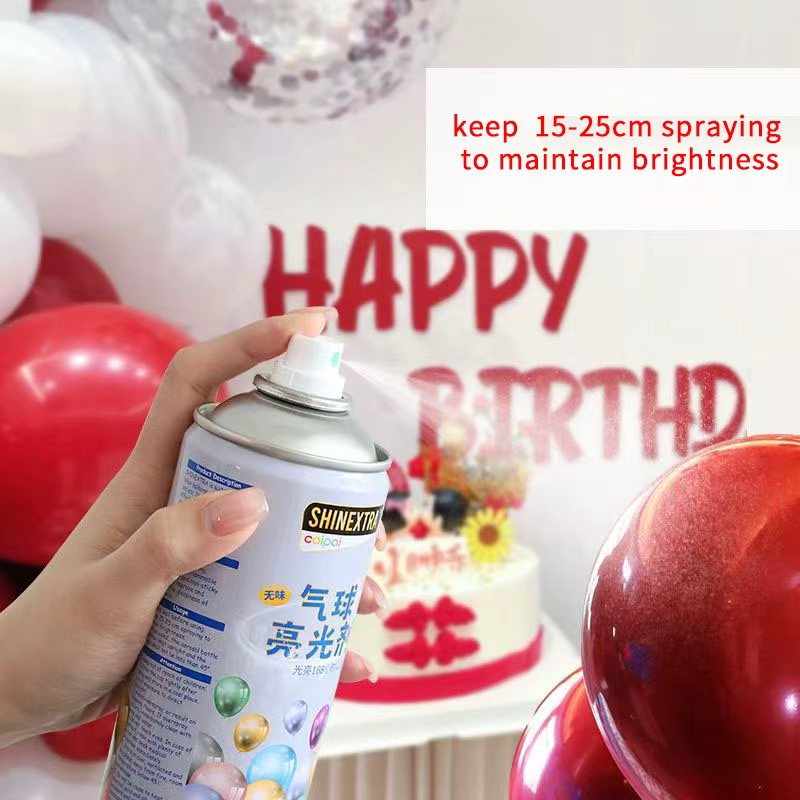 Баллоон Схине спреј користи иновативну формулу на уљу. Његова микромолекуларна структура брзо продире и придржава површину латекса, формирајући бешавни заштитни филм са високим сјајем. Третирани балони могу постићи величанствени појачање преко 300%, што резултира живим, богатим бојама.