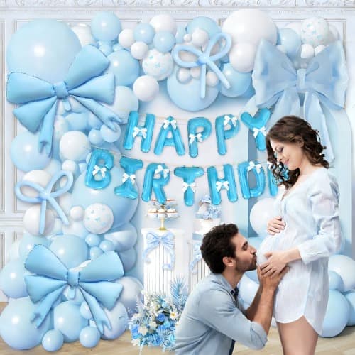 Овај сет укључује балон боје макарона у плавој боји од 5 инча, 10 инча, 12 инча и 18 инча, мат белу боју од 5 инча, 10 инча, банер за срећан рођендан, балон од фолијског макарона плаве машне, макарон плави од 260 дуги балон, лепљиву машну за траку и траку за лепљење.