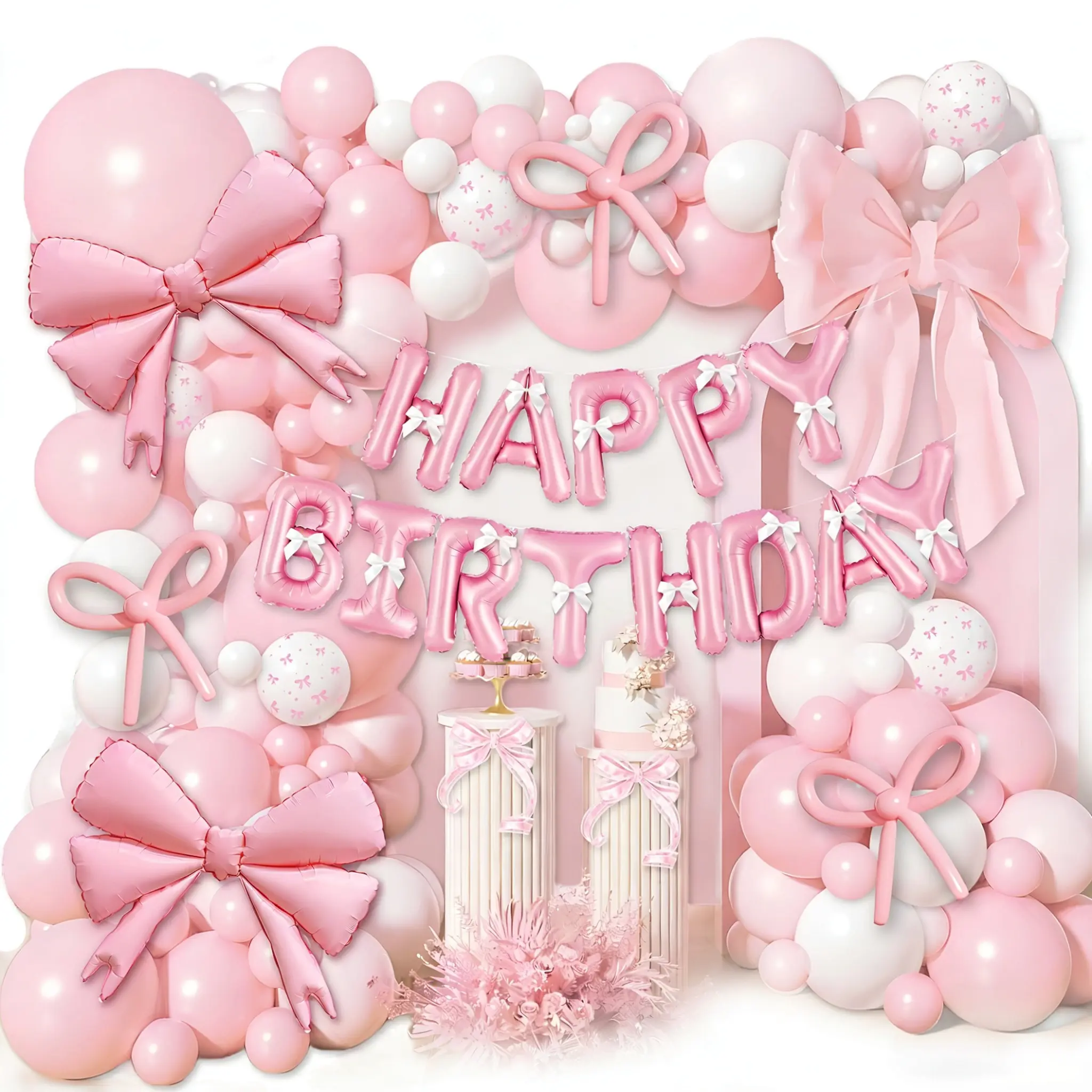 Овај сет укључује мат беби розе балон од 5 инча, 10 инча, 12 инча и 18 инча, мат белу боју у 5 инча, 10 инча, фолијски ружичасти балон са машном, мат беби розе 260 дуг балон, машну од врпце, тачку за лепљење и траку за декорацију балона.
