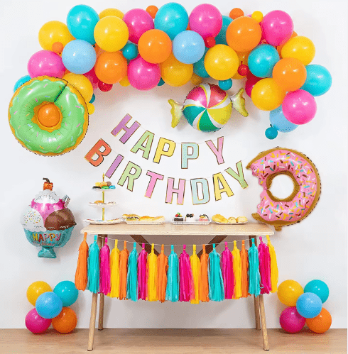 Комплет вијенаца од балона од слаткиша је популаран артикал са великом поновном куповином, високом вриједношћу боја и високим профитом на тржишту декорације за забаве. Посебно је дизајниран за купце на велико, прекограничне продавце и продавнице потрепштина за забаве. Има распоређених сцена и добро се продаје на полицама.