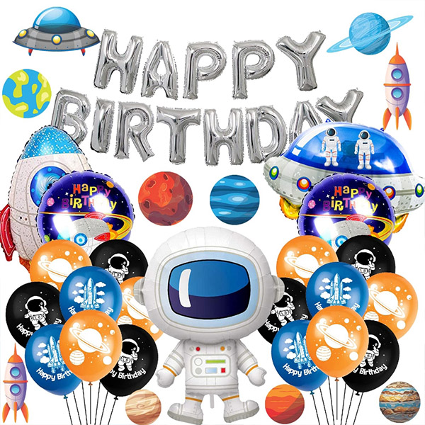 2. Продаја малих пакета: сет балона од фолије са темом цртаног филма. Овај пакет се обично састоји од балона од астронаута из цртаног филма или балона са ракетом из цртаног филма, балона од фолије са звездама од 18 инча и балона од фолије из округле свемирске серије од 18 инча. Неки пакети могу додати и балоне од латекса. Наш пакет се може прилагодити према захтевима купаца како би задовољио потребе сваког купца. Ово мало паковање балона са фолијом у свемирској теми, број је мали и изузетан, главна слика астронаута из цртаног филма. Балони од фолије са свемирском тематиком су веома атрактивни и могу се користити за декорацију журки на тему свемира и рођенданске декорације у свемиру. Савршени за дечаке који сањају да истражују универзум, ови рођендански балони ће ваш комплет за рођенданску декорацију са свемирском тематиком подићи на нове висине.