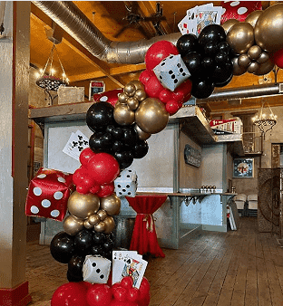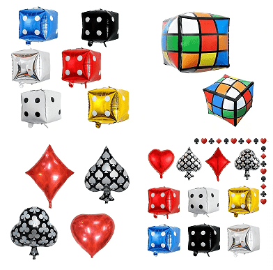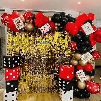 Комплет вијенаца од казино балона углавном укључује балоне од латекса, долазе у различитим величинама (5 инча, 10 инча, 12 инча и 18 инча). У њиховим бојама обично доминирају црвена, црна, златна итд. Да бисте побољшали ефекат слојевитости комплета, можете видети и прозирне латекс балоне и конфети латекс балоне. Као тема комплета, незаобилазни су и балони од фолије са темом казина.