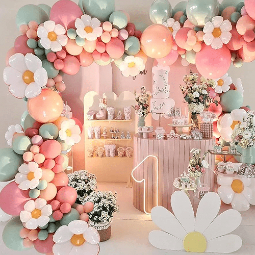 Рођенданска забава: Дејзи балон вијенац може се користити као позадински украс за рођенданске забаве, погодан за уређење дјечјих или женских рођендана, стварајући радосну атмосферу.