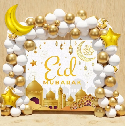 Ново представљеног ЕИД ал-Фитр Баллоон Кит додаје позадинску крпу, столњак и друге производе на претходне основне резервне делове. Позадинска крпа је дизајнирана са класичним елементима ЕИД ал-фитр, као што су Гилт Цресцент, арапски "Еид Мубарак" и Лоницара Јапоница интервете. Боја позадине је мекана бела или лагана боја деве, која не само да задржава само свети осећај фестивала, већ и интегрише топлу атмосферу породичног окупљања. Осећа се на зид дневног боравка, улазом или тржним центрима, постају визуелни центар сцене без компликоване инсталације. Ново додатни столњак је направљен од нафтног и водоотпорног ПЕ материјала, са симетричним геометријским линијама штампаним на површини и финим решењима испрекиданим на ивицама. Положен је на стололо за трпезарију, пријава или штанд за храну. Не може се бавити само мрљама од супе и десерта, већ и његови свечани обрасци могу одјећи од украса као што су ланци балона и заставе, чинећи распореду целог места интегрисано-са балона вијека у ваздуху на детаље радне површине, свако место преносе о поновном радној површини и радост ЕИД ал-Фитр.