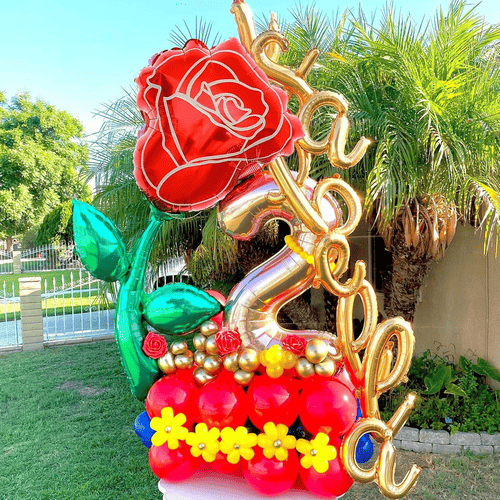 Балони од цветне фолије долазе у различитим облицима, величинама и бојама. Углавном укључује цвет са лишћем и облик једног цвета. Боје су им углавном у светлијим нијансама. Као што су розе, црвене, љубичасте, наранџасте, итд. Могу се користити на један начин или комбиновати са другим балонима за израду вијенца од балона. На пример, додајте неколико балона од латекса да направите комплет венаца од балона од цветне фолије.