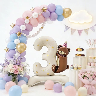 Тхебалони са стајаћим бројевима од фолијеукраси имају посебне подлоге на надувавање. Чврсто стоје. Није потребна додатна подршка. Постављање је флексибилно и бесплатно. Долазе у многим бојама. Боје укључују плаву, розе и сребрну. Стилови бројева су завршени. Покривају цифре од 0 до 9. Добро се уклапају у различите теме. Теме укључују рођендане и прославе годишњица.