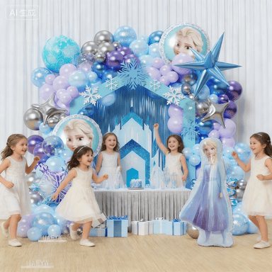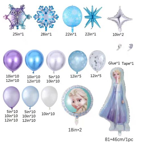 Балони од фолије су главни део комплета лукова балона са темом Фрозен. Они углавном укључују балон од фолије са портретом принцезе, балон од фолије сњеговића. Балон од фолије са бројевима и балон од фолије са словима се такође могу додати да бисте створили вишу атмосферу забаве као да желите украсе у стилу рођенданске забаве.