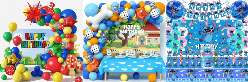 Овај стил комплета за декорацију балона за срећан рођендан комбинује балоне од латекса, балоне од фолије са позадином и столњак како би створио импресивну сцену рођенданске забаве кроз уједињење боја. Позадина и столњак се могу прилагодити величини сцене, а стил и узорак се могу прилагодити према теми забаве и систему боја.