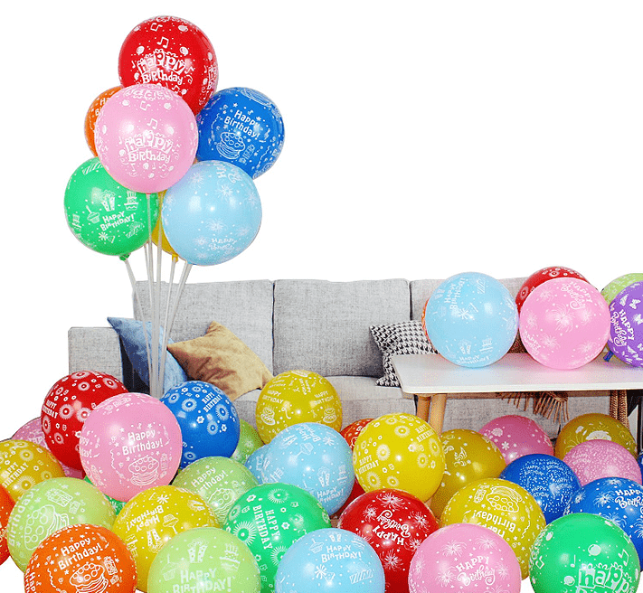 Наши балони за штампање Срећан рођендан су направљени од природног латекса и депротеинизовани су са веома малом вероватноћом алергије (мање од 0,5 процената). Ако корисник има историју тешке алергије на латекс, препоручује се да се предност даје балонима серије фолија; пре употребе, осетљиви људи могу да контактирају површину балона 1-2 минута, а затим да га користе након потврде да нема непријатности.