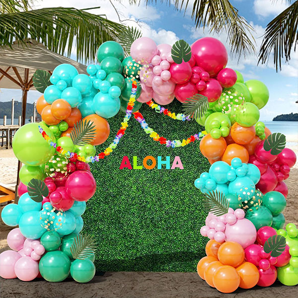 Овај хавајски комплет венаца од балона направљен је од шарених латекс балона. Живе боје чине га савршеним за дечије рођендане. Такође је доступан у различитим стиловима. Прилагођени комплети тропских лукова од балона могу се прилагодити и саставити према вашем жељеном стилу. Слободно креирајте своје јединствене дизајне и експериментишите са њима како би ваш следећи догађај био потпуни успех.