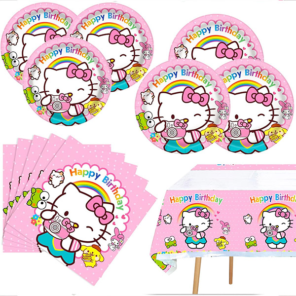 3) Посуђе: Хелло Китти прибор за јело се и даље може упарити са јединственим шарама розе и белог прибора за забаву како би се створила слатка атмосфера за вашу забаву. Сви производи су веома издржљиви, јарких боја и имају осећај високог квалитета.