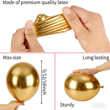 Балони од латекса које нудимо за рупу у једном комплету вијенаца балона су направљени од 100% природног латекса који је увезен из југоисточне Азије. Њихове величине су 5 инча, 10 инча, 12 инча и 18 инча, а распоређивањем у различите величине може се створити атрактиван ефекат слојевитости.