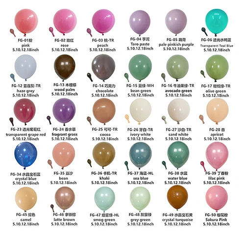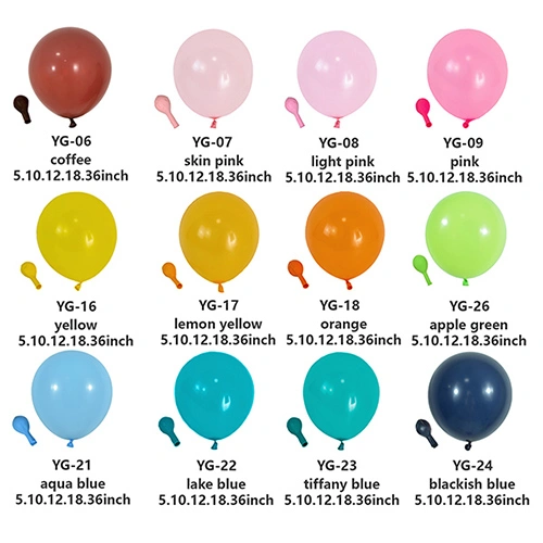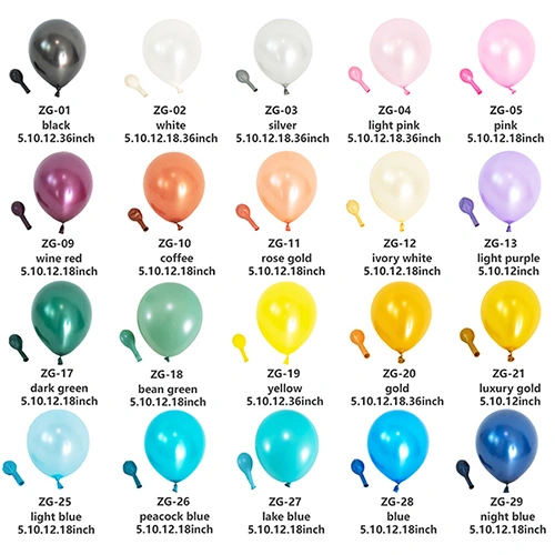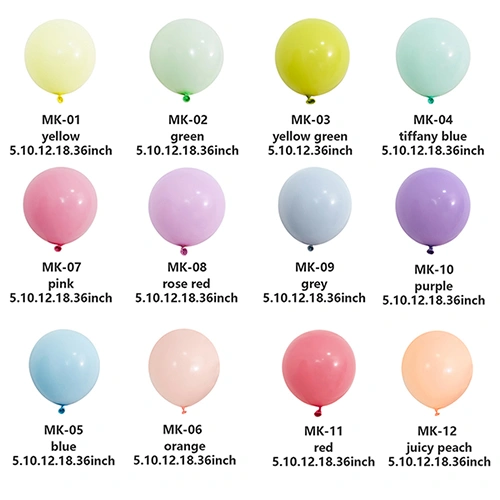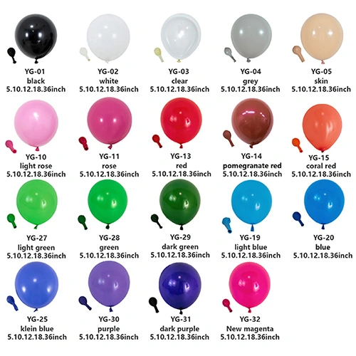 Балони од латекса су широко распрострањени декоративни и забавни предмети. Ови балони су веома популарни у разним приликама због својих различитих боја и начина употребе. Од мат црвене, жуте, плаве и зелене до ретро розе и љубичасте, а затим до металик тонова попут злата и руже, висококвалитетни балони могу створити изненађујуће визуелне ефекте и задовољити потребе различитих сценарија.