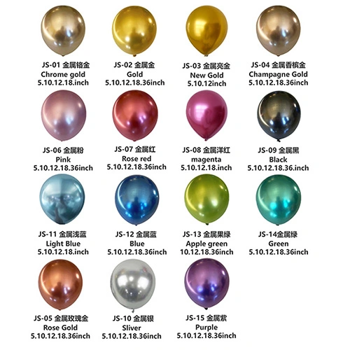 Метални балони:Са завршном обрадом у огледалу високог сјаја и привлачним текстурама и бојама, ово су најсвестранији балони од латекса за употребу у декорацијама за забаве, штампању по мери и још много тога.