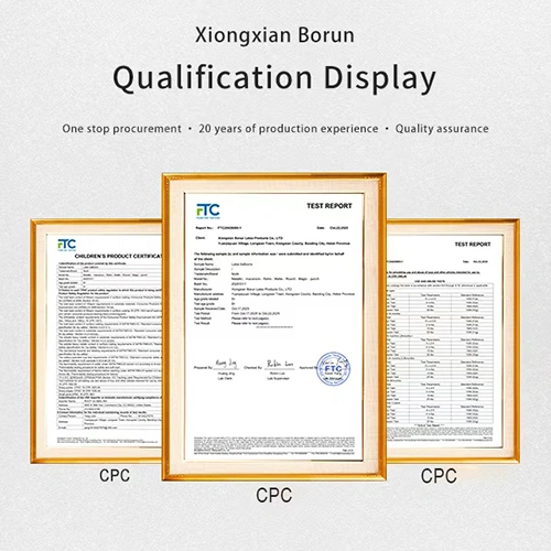 АСТМ Ф963 (Стандард за безбедност играчака у САД):Обезбеђује да производ испуњава захтеве за нетоксичност на америчком тржишту и да је погодан за децу и употребу у затвореном простору. Ова сертификација је обавезна за Амазон и тржиште САД. Ако купујете балоне од нас на велико, ми ћемо вам дати овлашћење за коришћење сертификата.