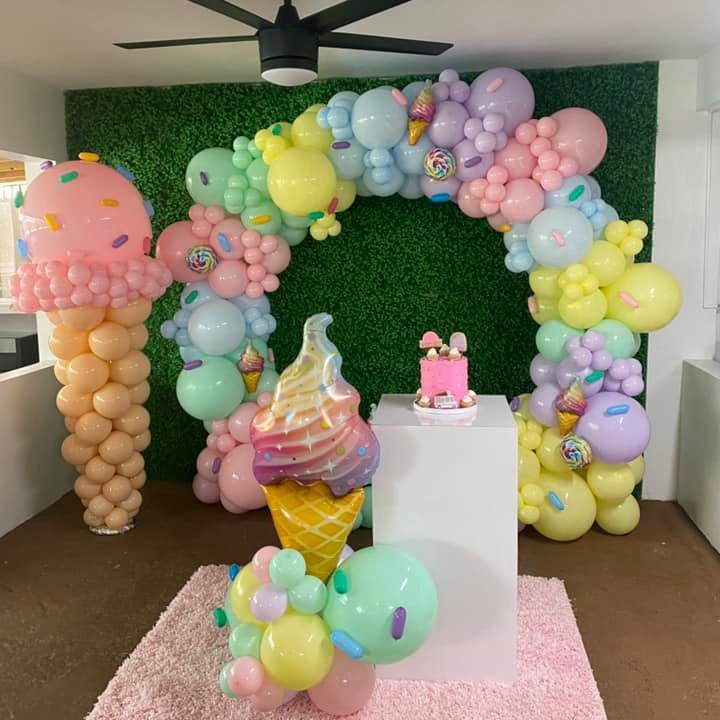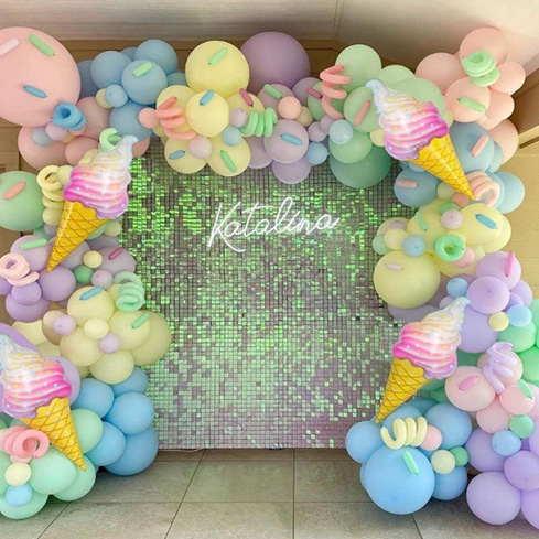 Макароон Сладолед Баллоон Арцх Гарланд Кит садржи латекс балоне разних боја и величина, маца прах, маца плава, маца жута, маца зелена и маца пурпурна, као и дуги балони и балони за сладолед и фолију. Након што су ови балони надувани, они се састају кроз ланце балона, лепке и врпце и врпце да заврше прекрасан макаронски сладолед балон Арцх Гарланд. Шарени балон са балоном Макароон-а Гарланд може бити посебно дизајниран за вашу странку или догађају. То је савршен избор за спољашње странке, школске странке, компаније или породичне странке, дипломиране прославе, декорације и на отвореном, посебно погодне за дечије рођендане, бебине странке, родно откривење, једнороме, душевне паметне странке сладоледа, венчања, венчања. Направите тему балона дуге за вашу странку или било који тематски догађај.