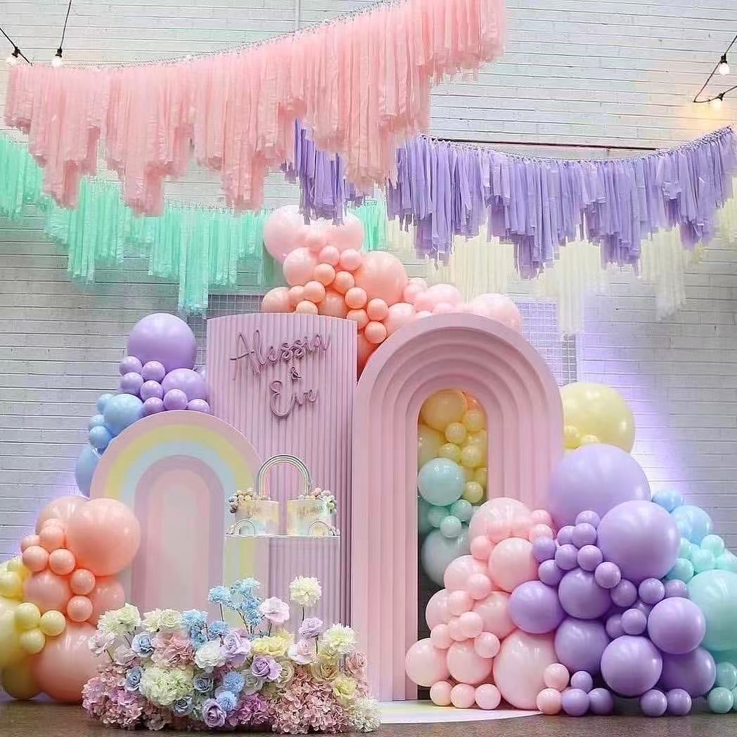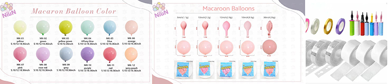 Баллоонс у боловима Макароон Гарланд је популаран за своје меке и сањиве боје. Читав сет се фокусира на 12 нежних боја макарона. Има макарон црвену, макарон плаву, макарон љубичасту и друге боје. Свака боја доноси свежи и романтични изглед.