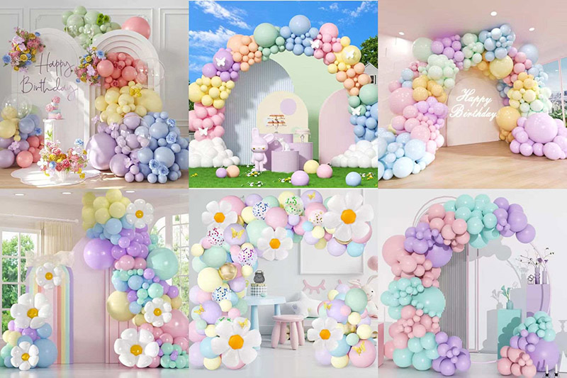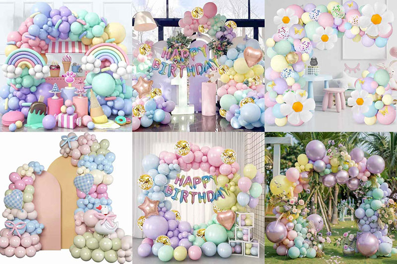 Број фолије и балони за слово могу се придружити балонима макарона Гарланд Арцх. Приказују рођенданску старост, тему за одмор или марке. Блолони за срчане и звезде балони додају означавање меких боја. Они чине да се подесите више слојева и визуелног утицаја. Сјајна површина балона фолије разликује се са мат изгледима балона Макароон ЛатеКс. То чини украс лепшим.