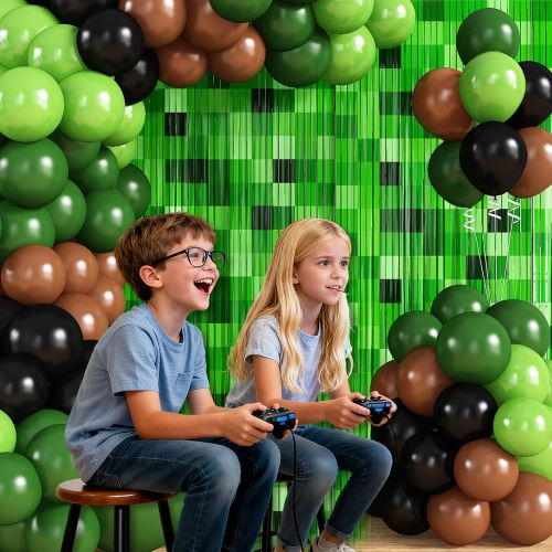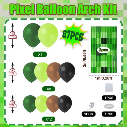 Инспирисан минецрафт видео играма, овај издржљиви Минецрафт балон арцх комплет комбинује различите нијансе зелених балона у пикселима са позадином за забаве са Минецрафт тематиком да створи разиграни слојевит изглед који хвата шарм класичних авантуристичких игара.