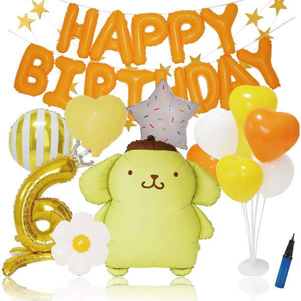 ПомПомПурин је првобитно био златни ретривер Канагаве, жива торба. Режисер га је назвао пудинг пасом због његовог лепог изгледа прекривеног брашном када је био похлепан за пудингом. Након што се придружио породици Санрио, његова култна беретка и лењи карактер брзо су стеклипопуларност и волела су га деца широм света. Овај ПомПомПурин фолијски балон који производимо садржи тродимензионални ПомПомПурин балон од фолије, ПомПомПурин штампане фолијске балоне и балоне од фолије у облику срца или балоне од фолије у облику звезда. Балон са фолијом произведен у фабрици балона НиуН® направљен је од висококвалитетног фолијског материјала, који је издржљив и за вишекратну употребу, који се не може лако ломити и погодан за унутрашњу и спољашњу декорацију. Коришћење овог комплета на забави ваше деце учиниће забаву занимљивијом и обрадовати госте и децу.