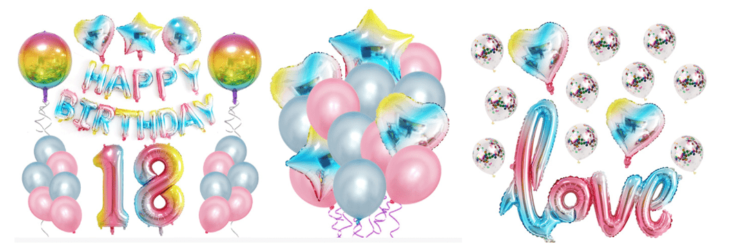 Аспект боје: балон од фолије са дугиним бројем који користи градијентно цветање, шивање у боји, дугине пруге и друге процесе, показујући богат избор ефеката боја. Неки производи су засновани на седам основних боја: црвена, наранџаста, жута, зелена, плава, индиго и љубичаста. Кроз постепену промену технологије природног прелаза, они стварају провидну текстуру попут дуге за кишом. Неки производи користе колизију боја са високом засићеношћу, као што је розе и плаво спајање, жути и зелени одјек, стварајући снажан визуелни утицај и осветљавају атмосферу забаве. Ови дизајни боја су у складу са јавном психолошком асоцијацијом на лепоту и срећу коју симболизује дуга, а такође се могу прилагодити стиловима забаве са различитим темама.