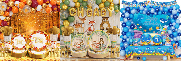 Странке су примарна употреба за Ниун® папирним прибор. Упаривање са сетом тематских балона Гарландија може побољшати тему. Сваки балон Гарланд има одговарајућу тему и нуди разне боје како би се савршено координирало са различитим скуповима за столове папира. Упаривање папирног прибора са одговарајућим тематским балонским стиловима Гарланд Стилес ће створити сјајну забаву!