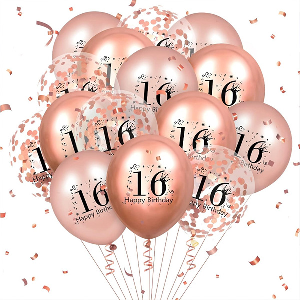 Одштампани латекс балон за 16. рођендан:Овај латекс балон за 16. рођендан који производи наша фабрика је веома погодан за прославе 16. рођендана и прославе 16. годишњице. Имамо разне боје које можете изабрати. Приказујемо ружичасто злато, црно злато, љубичасто злато, плаво и црно. Такође можемо прилагодити 16 штампаних балона према вашим захтевима. Они су одлични позадински реквизити за фотографисање и могу додати радост и активну атмосферу овим сценама. Овај штампани балон се може напунити ваздухом, хелијумом или чак водом и не може се лако оштетити или променити боју. Одличан је украс за све врсте прослава 16. рођендана или породичних окупљања. Користите овај балон од латекса са другим декорацијама и декорацијама за забаву за још више забаве.