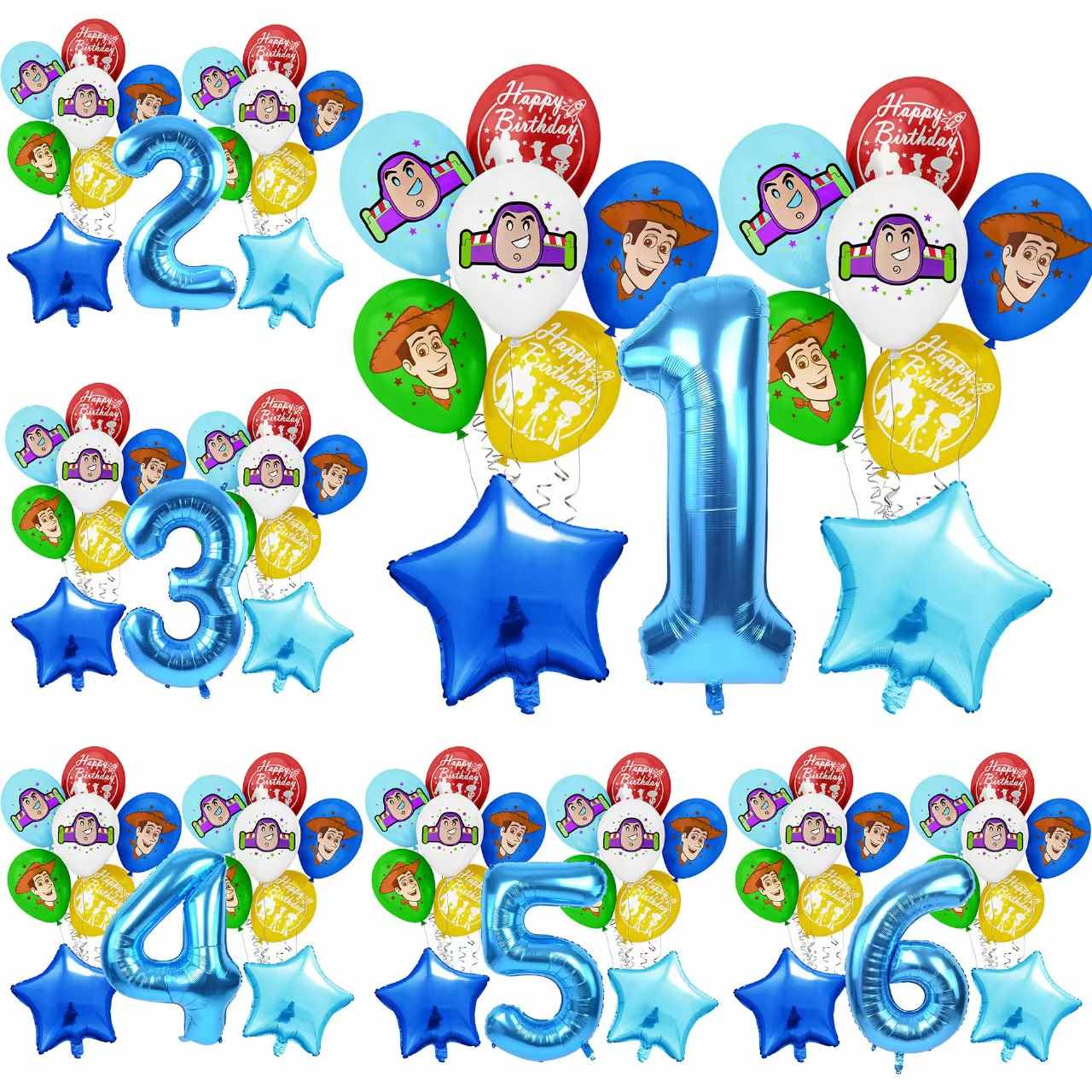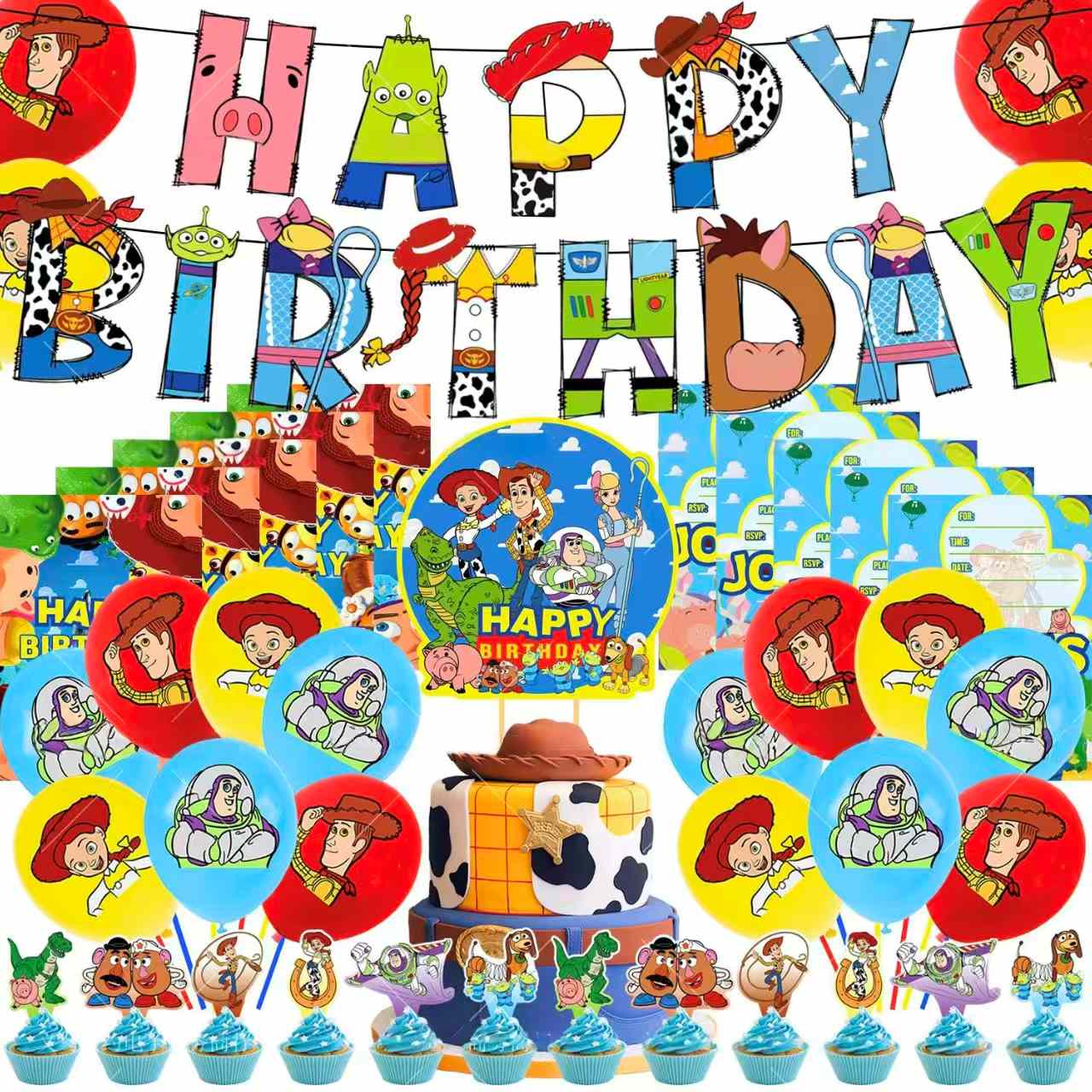 Прича о играчкама Латекс балони користе плаву, жуту, зелену и црвену као главне боје. Приказују бели облаци и отиске карактера. Изглед се подудара са стилом филма и лако је знати. Они су добар избор за декор странке. Направљен од природних латекса, материјал је сигуран и еколошки прихватљив. Балони се добро протежу, остају округли и пуни након пуњења и не појављују се лако. Они одговарају дечјој странке.