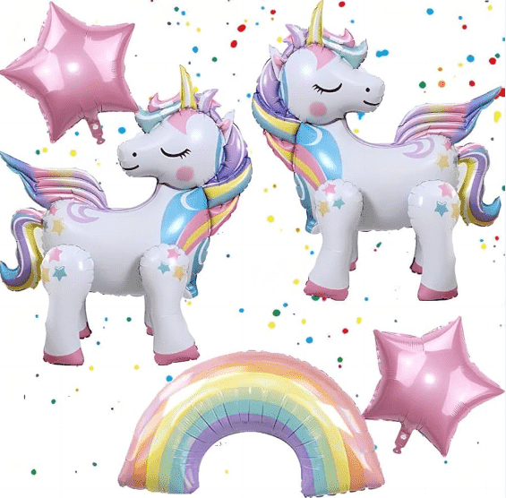 Балони са темом једнорогазаснивају се на језгровитом тоналитету фантастичних бајки. Они су подељени у две основне категорије: штампани латекс једнорог балони и једнорог балони од фолије. Они такође укључују тродимензионално моделирање, моделе лампиона и друге деривате. Они су популарни предмети за декорацију забаве.