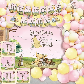 Винние тхе Поох балон арцх гарланд кит је вруће продајни производ наше фабрике различитих стилова и богатих боја. Овај комплет се углавном састоји од различитих величина латекс балона Винние тхе Поох. Наши балони су направљени од природне гуме и висококвалитетних материјала од алуминијумске фолије, прошли су строге безбедносне тестове, еколошки су и нетоксични, тако да их можете са поверењем користити. Такође имамо одговарајући прибор за медведје, позадинску тканину, кутије за балоне итд., који су такође направљени од зелених и еколошки прихватљивих сировина. Позадинска тканина служи као гламурозна позадина за фото кабину или сто за десерт, док украсна папирна кутија додаје гламурозан додир изложби поклона или поклону за малу забаву. Комплет вијенаца од балона Вини Пу је савршен за рођендане, откривање пола, вјенчања, крштења беба, годишњице и друге тематске забаве. Било да се ради о окупљању пријатеља или породичном окупљању, може донети незаборавно искуство за вас и ваше пријатеље.