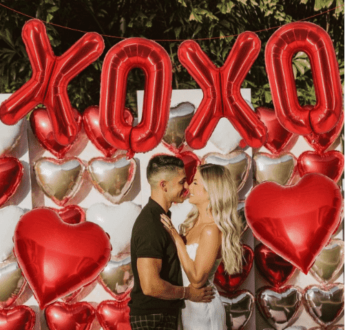Романтични сет за Дан заљубљених: усредсређен на балон од фолије „КСОКСО фоил баллоонс“, упарен са балоном у облику срца, балоном од латекса са шљокицама и украшен тракама и тачкицама лепка. Целокупни дизајн је пун слатког даха, савршеног уклапања венчања, брака, признања и других романтичних сцена, тачних да задовољи потрошачке потребе парова.